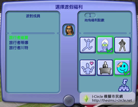 f模擬市民 2:環遊世界中,當模擬市民過了一個愉快的渡假回家後,玩家便可以為模擬市民選擇渡假福利。渡假福利是短暫的,可以使模擬市民的情緒更加正面。每 一次旅行只可以選擇三個渡假的紅利。不過,如果模擬市民遇到一個不愉快的假期,可能沒有紅利選擇,而且會在短期,性格變得十分煩燥。
